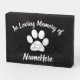 Memorialize your beloved dog or cat with this customizable “In Memory of” wooden box sign in black with white lettering.