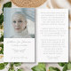 Honor a cherished life in loving memory with this elegant prayer card featuring classic script typography, elegant floral details, and space for a personal photo, name, with a heartfelt bereavement verse. A timeless memorial keepsake for funerals, celebration of life services, and remembrance gatherings, offering comfort and sympathy during times of grief and loss.You can find more elegant prayer cards in the Elegant Memorial Keepsake Prayer Card collection in The Gathering Designs store.