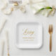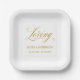 Personalize this simple elegant paper plate with the name and dates of your loved one. Modern elegant gold script typography on a clean white background. Perfect addition to your funeral memorial remembrance reception event. Easy to customize text. Our heartfelt condolences on your loss.