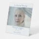 Honor your loved one with a beautifully designed pedestal tabletop funeral photo sign, created to serve as a heartfelt tribute during a funeral, memorial service, wake, or celebration of life. This elegant display sign features an elegant swirl detail, the phrases, "in loving memory" and "loved forever". Add your cherished picture along with custom name and dates, offering a meaningful way to say in loving memory.