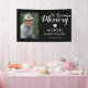 Memorial funeral banner featuring a stylish black background that can be changed to any color, a photo of your lost loved one, and a "in loving memory" template that is easy to personalize.