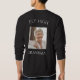 Personalized funeral memorial black sweatshirt featuring a large picture of your grandma, the text in loving memory of , their name, birth/death dates, and the remembrance saying we will always carry you in our hearts. on the back there is the photo and text saying fly high grandma. a special keepsake to treasure forever.