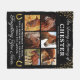 Personalized horse photo fleece blanket featuring 6 precious pictures of your beloved pet animal, gold horseshoes & glitter, the text "in loving memory of", your horses name, birth/death dates, and the sympathy quote "your presence we miss, your memory we treasure, loving you always, forgetting you never".