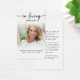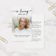 This elegant memorial prayer card features a cherished photo paired with the timeless phrase “In Loving Memory,” creating a meaningful keepsake to honor a life remembered with love. Designed with modern script typography and a soft minimalist layout, this card offers a heartfelt way to share remembrance at a funeral, memorial service, visitation, wake or celebration of life gathering. The reverse includes an editable comforting remembrance message (or change to a poem, prayer or bible verse), making it a thoughtful tribute for family and friends to hold close in memory of a loved one. Its small and portable size (3.5x2") makes this keepsake convenient to carry as a reminder of their life and spirit. Personalization makes these cards unique.