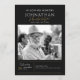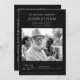 This modern funeral program design features a clean, minimalist layout with a black background, elegant serif fonts, and warm gold handwritten script accents for a timeless and respectful look. A large photo is showcased alongside personalized memorial details, setting a heartfelt tone for the service. On the back, the layout includes space for the order of service, making it easy to create a meaningful and well-structured tribute. This tasteful and contemporary design offers a beautiful way to celebrate a loved one’s life with grace and dignity.
