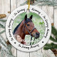 Customize with favorite horse photos, and name . Ornament is double sided, you can do 2 favorite photos, one on each side. Personalize name on the front, and dates on the back. Perfect for a Christmas Memorial Ornament.