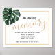 Honor loved ones at your wedding with this elegant "In Loving Memory" sign featuring lush Monstera leaf illustrations. The tropical-inspired design adds a touch of natural beauty, perfect for outdoor or destination weddings. This heartfelt tribute provides a graceful way to remember those who couldn't be with you on your special day, blending seamlessly into your wedding décor while offering a warm and personal touch.