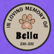 This round iron on patch is a beautiful way to commemorate the life of a beloved pet. The patch features a lovely illustration of a paw print with a heart inside of it, with "In Loving Memory Of" printed above and a custom pet name and years of birth and passing printed below. The patch is fully customizable, allowing you to honor your furry friend in your own unique way.