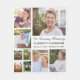 Elegant memorial blanket celebrating the life and times of a deceased loved one featuring "In Loving Memory" in a stylish script, a nine photo collage to commemorate their family, pets, friends, achievements, travels and joys, their name and birth and death dates.