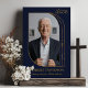 In Loving Memory Photo Funeral Memorial Dark Blue Background. Designing a memorial board is a heartfelt way to honor a loved one, creating a visual tribute that celebrates their life, memories, and legacy. The design should reflect their personality and the cherished moments that define their story, blending thoughtfulness with creativity to evoke both warmth and remembrance.