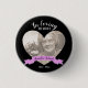 Show your love with a memorial heart badge/button. Great to wear to remember your loved one, personalize with your own photo, name and dates. Simple black background photo frame with a pink ribbon. © Art and design by Sarah Trett. www.sarahtrett.com for www.mylittleeden.com on zazzle