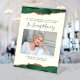 An elegant sign to honor a departed family member at your wedding. Emerald green watercolor agate borders edged with gold faux glitter decorate the top and bottom on an ivory background. The words "In Loving Memory" appear in green handwriting calligraphy, with editable text in serif font. Easily replace the sample image with a horizontal photo of your loved one.
