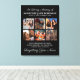Elegant memorial tribute picture canvas featuring 6 precious pictures of your lost loved one, the text "in loving memory", their name, birth/death dates, and the remembrance saying "your presence we miss, your memory we treasure, loving you always, forgetting you never".