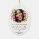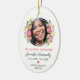 Pretty memorial keepsake christmas ornament featuring a a photo of your loved one, a pink watercolor floral wreath, and a "in loving memory" template that is easy to personalize.