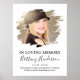 Create your own funeral memorial poster featuring a photo of your loved one, the beautiful saying "In loving memory", their name, dates and a personal message. Perfect tribute for funerals, vigils and memorial services. The text style, size and color can be changed by clicking on the customize further link after personalizing.