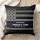 Simple and stylish, this design is the perfect way to honor a fallen officer who dedicated their time to serve and protect the community. The design features a grunge American flag with a single blue thin line (stripe). All text is customizable to fit your "In Loving Memory" needs for the fallen officer. Thank you to all officers who to uphold their sworn oath to protect and defend the Constitution of the Republic of the United States of America.