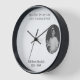 I received this as a birthday gift from my husband to replace a clock that had broken. It was perfect, pictures of my sweet family to see at every hour of the day. The size of the pictures looks nice for the size of the clock and I love looking at it! The only downside is there is no cover for the battery on the back, which makes me nervous having little kids running around the house, but an easy fix with some tape. The printing turned out clear, considering they were all cell phone pictures. Some of them look slightly grainy upon getting close up. But so nice overall!