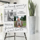 Photo funeral board which you can personalize with two photos of your dear departed and add your personalized text. The design features elegant script and modern typography in black and white and is lettered with "in loving memory" and "forever in our hearts". Your pictures will be displayed in square format. Please browse my store for alternative styles. If you would like different colors, click customize further, or message me.