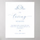 Honor your loved ones who passed on with this elegant "In Loving Memory" wedding sign. White and blue design with a beautiful hand-drawn monogram with the coupes initials in calligraphy. This same sign design with the monogram with initials in block typography is also available. Ability to change the message if you like. 8" x 10" is only our default size, the sign is available in a variety of sizes. Elegant, simple, and clean style. Easy to frame or glue/staple into inexpensive MDF. Design part of our "Blue Watercolor Botanical Monogram Wedding" collection with a variety of coordinating products available.