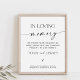 This In Loving Memory Sign features a minimal elegance to your wedding or special event to honor those who are truly missed. Easily edit most wording to match your style. Text and background colors are fully editable —> click the "Customize Further" button to edit!