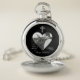 In Loving Memory Typography Faux Silver Cross Heart Shape Photo Pocket Watch, Add Name, Text and Photo