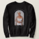 Personalized funeral memorial black sweatshirt featuring a large picture of your loved one, the text in loving memory of , their name, birth/death dates, and the remembrance saying we will always carry you in our hearts.