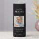 Personalized funeral memorial black candle featuring a large picture of your lost loved one, the text in loving memory of , their name, birth/death dates, and the remembrance saying we will always carry you in our hearts. beautiful loving keepsake to treasure forever.