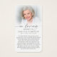 This peaceful memorial prayer card design pairs a warm ocean sunset with a softly faded photo and elegant In Loving Memory typography. Gentle waves and golden light create a calming backdrop that reflects comfort, gratitude and lasting love. Thoughtfully designed for a funeral, memorial service or Celebration of Life, this keepsake offers family and friends a meaningful way to honor a life remembered with compassion and grace. Its small and portable size of 3.5x2" (wallet-sized) makes it convenient for loved ones to carry it with them as a reminder of your loved one’s life and spirit. Personalization makes each card unique.