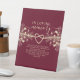 Honor cherished memories with our elegant pedestal sign, merging vintage, boho, and modern elements seamlessly. Rich red burgundy hues set the backdrop for a heartfelt tribute, accented by a gold rope heart and gilded floral lace. In loving memory, we celebrate lives that continue to inspire us.