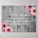 Rustic wood and pink flowers memorial wedding sign- Pink floral In Loving Memory reception poster to honor missing loved ones. Matches rustic country wedding themes and we have coordinating wood wedding invitations, rustic wood guest book, and other complementary wedding decor in our Zazzle.com/angela65 shop. Rustic, gray barnwood or bleached out beach wood planks look background. Reads 'In Loving Memory of Those Who Are Watching From Above You Are Forever With Us' in elegant script and modern fonts. Floral blush and coral pink flowers adorn upper and lower corner. Use the Customize It button if you want to change anything - wording, font styles, sizes, colors, or placement. Complements vintage floral wedding decor or garden wedding, rustic barn wood wedding themes, pink and gray wedding colors, casual outdoor weddings, spring weddings, and weddings in the summertime.