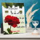 The vibrant red rose in front of the rows of crosses in a military cemetery is a bold yet beautiful photo. The saying "On your grave the rain will fall from the eyes of a mighty nation” honors the fallen soldiers. This can be personalized with the soldier's name.