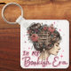 The key chain is made of metal and really sturdy. The flower design is really cheerful. The logo and colors are clear and crisp!