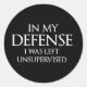 In My Defense I Was Left Unsupervised Funny Classic Round Sticker