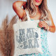 Featuring a trendy cool wavy retro text and the customization of "future Mrs.," this tote bag adds a touch of personalization to your bridal ensemble. The trendy dusty blue navy color enhances the bag's stylish appeal, making it an ideal choice for bridal showers and bachelorette parties.