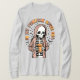 This sweatshirt is perfect for anyone who looks forward to fall and all things pumpkin spice. The front design features a skeleton with a pumpkin spice drink. The back design has a skeleton wearing a hoodie with a typography graphic that says "In my Pumpkin Spice Era." Colors include Orange, Mustard Yellow, and Brown.