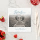 Funeral wake buffet or drinks simple in our hearts forever photo white with gray blue text napkins. Simple yet elegant napkins simply replace sample text and photo holder with your own special photo and name and life dates. Original typography and in our hearts forever graphic design by Sarah Trett. www.sarahtrett.com for www.mylittleeden.com (Photo credit by Guilherme Stecanella on Unsplash model photo is just a placeholder image for you to replace).