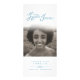 White and blue funeral program order of service double-sided vertical DL / rack card simple in our hearts forever ceremony program. Simple yet elegant style program fan ideal for a keepsake of the person whom they are remembering. Simply replace sample text and photo holder with your own special photo and funeral service information details. Original typography and in our hearts forever graphic design by Sarah Trett. www.sarahtrett.com for www.mylittleeden.com (Photo credit by Guilherme Stecanella on Unsplash model photo is just a placeholder image for you to replace).