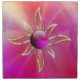 A brilliant fractal flow of pale yellow and orange turning to hot pink, overlaid with gold sun-motif filigree studded with jewels and accented with a smooth deep pink gem surrounded by glowing golden sun rays.