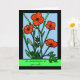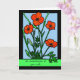 In remembrance of your wife on your anniversary, paper greeting card. Card image with red poppies and greenery in a faux stained glass look. Black outlines around the flower stems, leaves, and blooms. Art, image, and verse copyright © Shoaff Ballanger Studios, 2022.