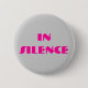 Zen grey and juicy pink in a an art deco font: this is a button for the buddha in a three-piece suit.