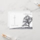 This memorial card has a dark modern and elegant design with a white border around the front and back. In silent mourning - tree on a meadow.
