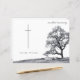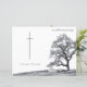 This memorial card has a dark modern and elegant design with a white border around the front and back. In silent mourning - tree on a meadow.
