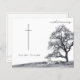 This memorial card has a dark modern and elegant design with a white border around the front and back. In silent mourning - tree on a meadow.