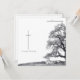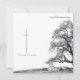 This memorial card has a dark modern and elegant design with a white border around the front and back. In silent mourning - tree on a meadow.