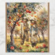 Two scarecrows stand among apple trees in an orchard, surrounded by ripe apples both on the branches and scattered on the ground. They are dressed in old clothes and have hats on their heads, standing still in the peaceful, sunlit setting. Digital Art