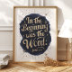 Inspire faith and reflection with this elegant art print featuring the profound words of John 1:1. The beautiful gold calligraphy against a backdrop of deep blue and starry accents creates a visually striking and spiritually uplifting design. Perfect for adding a touch of elegance and inspiration to your home or office décor.