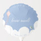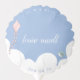 a white on blue text in the clouds balloons with kites and birds for a boy or girl baby shower