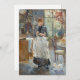 In the Dining Room (1886) by Berthe Morisot beautifully captures the everyday domestic scene of a woman in the intimacy of a dining room setting. Morisot’s signature Impressionist style is evident in the soft brushstrokes, capturing the delicate interplay of light and shadow across the room. The painting portrays a moment of quiet elegance, showcasing the simplicity and beauty of interior life. Morisot's ability to create a sense of warmth and comfort is evident, as she delicately conveys the subject's graceful presence amidst a cozy, yet refined environment.