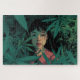 This garden art jigsaw puzzle features a portrait of a young woman with black hair surrounded by green leaves, with her face half in shadow. It would make a beautiful gift for a jigsaw enthusiast.