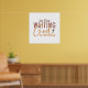 Poster depicts simple gold and white script on a black background. It features a cross and an inspirational Christian quote, "In the waiting, God is working."